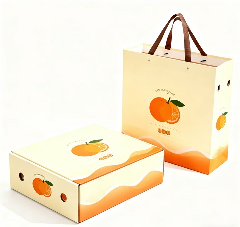 新鮮飽滿的橙子,需要精致包裝承載其天然鮮醇,而翻蓋盒搭配專屬手提袋的組合,正是高端水果包裝的優(yōu)選方案。盒身選用高克重特種觸感紙,表...